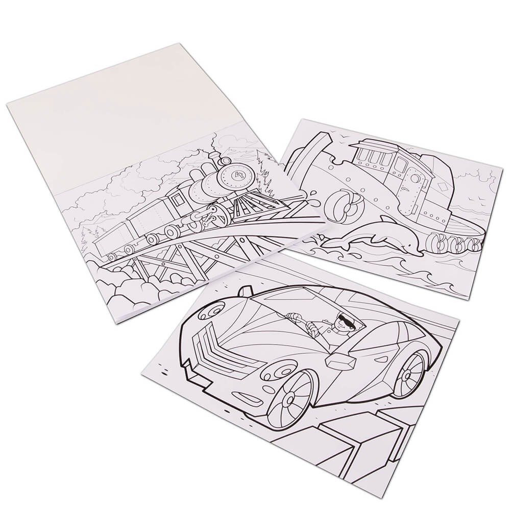 Fifty of the fastest, coolest cars and trucks are printed in outline in this oversize drawing pad.
